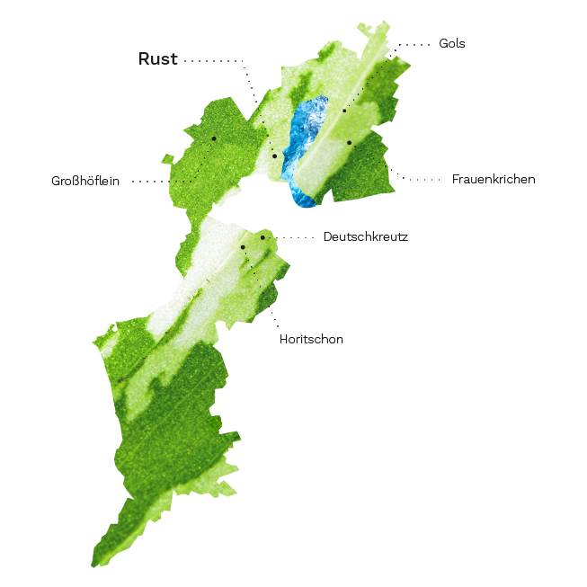 Die Palette der Weine bietet die sogenannte „Ruster Trilogie“ – von den trockenen Weißweinen über die Rotweine bis zu den edelsüßen Kreszenzen, deren Spitze der Ruster Ausbruch darstellt. Angebaut werden fast ausschließlich autochthone Sorten, die auf den Urgesteins- bzw. Kalkböden in Rust besonders gut gedeihen. Bei den Roten ist die Hauptsorte daher Blaufränkisch, gefolgt von Zweigelt und Pinot Noir. Ergänzt wird das rote Spektrum von der Spezialität Cabernet Franc. Bei den Weißen liegt der Schwerpunkt vor allem bei den Burgundersorten Pinot blanc und Chardonnay. Weiters gedeihen Welschriesling und Gelber Muskateller, die beide vor allem als Süßwein brillieren. Die weiße Spezialität stellt die alte österreichische Rebsorte Neuburger dar.