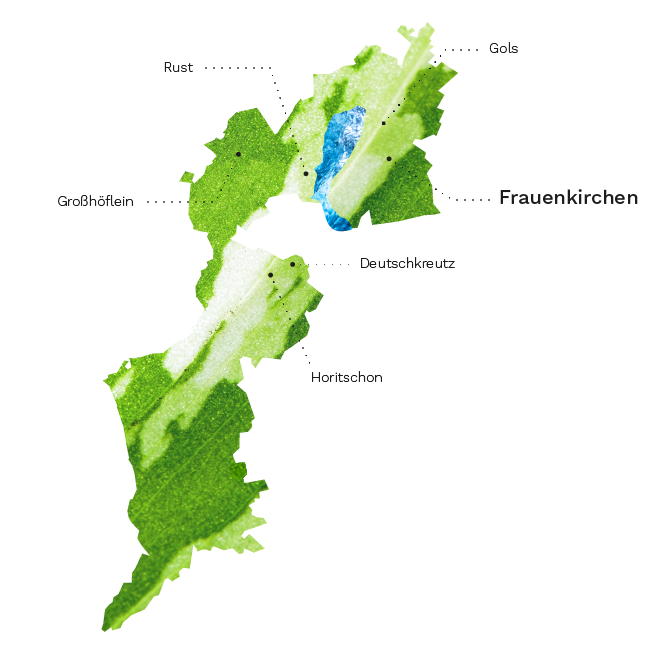 The Austrian red wine varieties of Zweigelt, St. Laurent and Blaufränkisch make up about 85 percent of the 30 hectares under cultivation. On both banks of Lake Neusiedl a wide range of different soils is cultivated including slate, lime, clay, and gravel. The most important sites are Ried Hallebühl, Vom Stein, Haideboden and Kirschgarten, where the only cultivated stone terrace site of the Burgenland is to be found.
